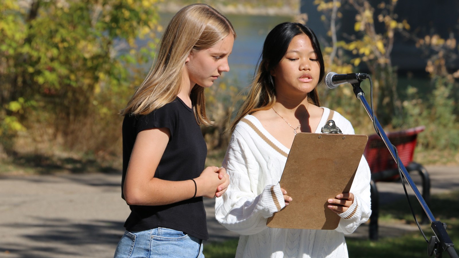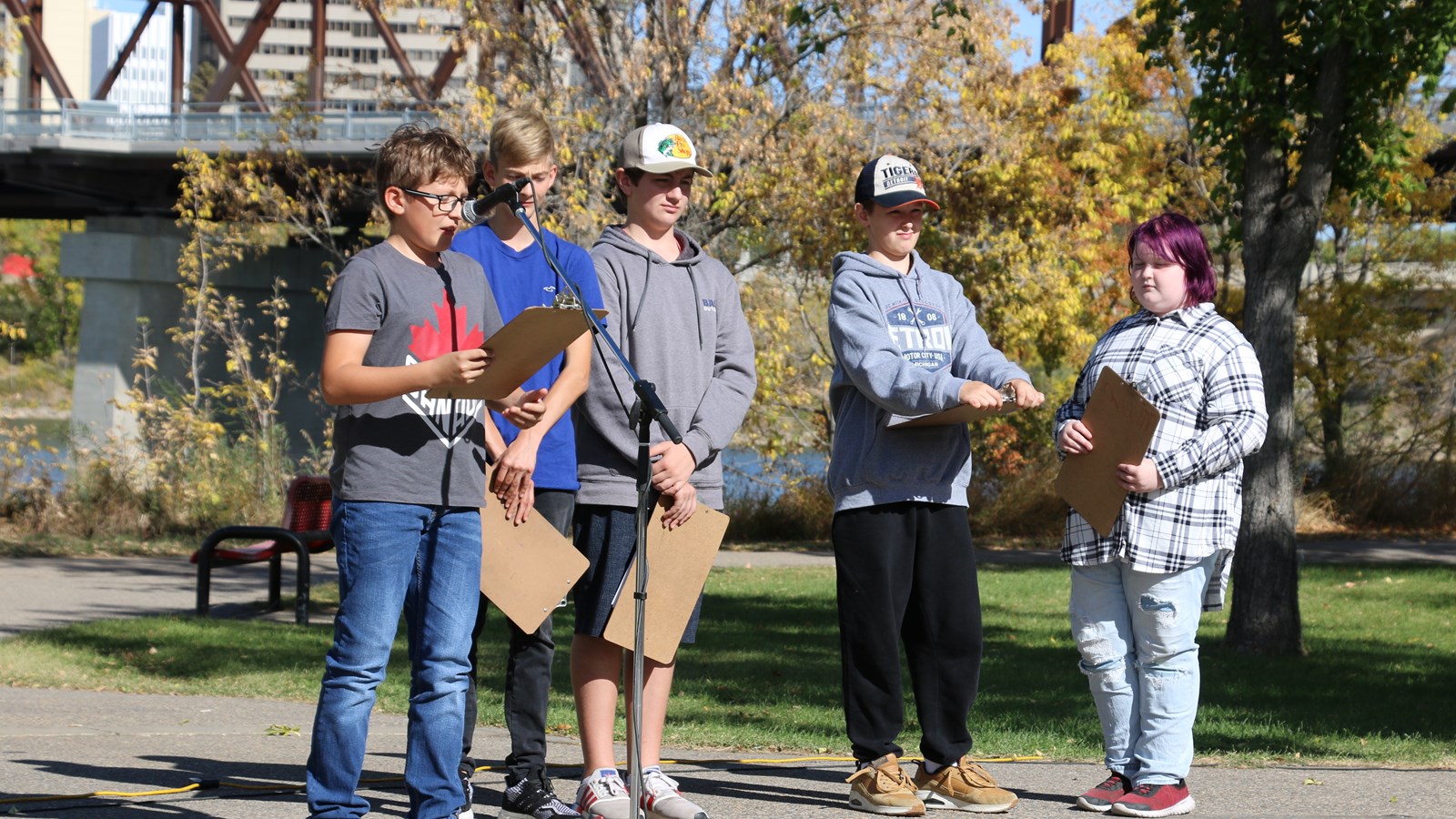 Continuing an annual fall tradition, Dustin Kasun’s Grade 7 and 8 students at St. Anne School led an event at Rotary Park Peace Plaza to recognize a past Nobel Laureate.