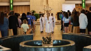 Pews—and overflow seats—at the Cathedral of the Holy Family were filled with Grade 8 students from all Greater Saskatoon Catholic Schools’ elementary schools at the Student Leadership Conference on Wednesday, October 2, 2025.
