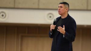 Guest speaker Kendal Netmaker, founder of Indigenous clothing company Neechie Gear, shared his personal and inspirational story of how acts of kindness toward him and his family while growing up gave him hope and helped shape him into the person he is today.