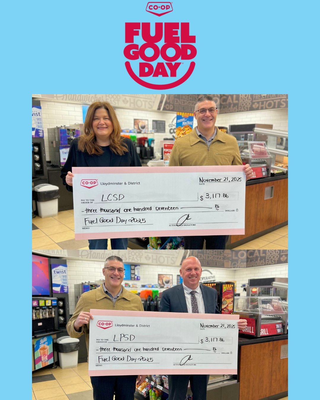 We were excited to present our Fuel Good Day recipients — Lloydminster Catholic School Division and Lloydminster Public School Division — with their Fuel Good Day fuel proceeds… over $3,100 each! Thank you to everyone who fuelled up and supported local schools!