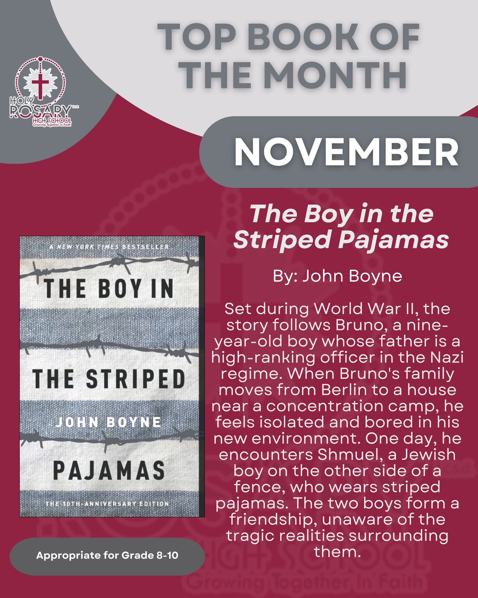 Holy Rosary High School – The Boy in the Striped Pajamas by Jo Boyne